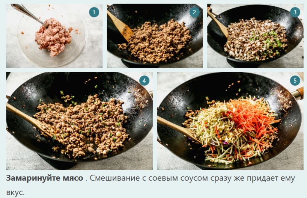 - Приготовьте фарш. В отдельной глубокой миске соедините фарш из индюшатины, яйцо, соевый соус, специи и хорошо перемешайте все это до однородной массы. Добавьте измельченные овощи и аккуратно вмешайте их, чтобы они равномерно распределились и не слишком помялись.